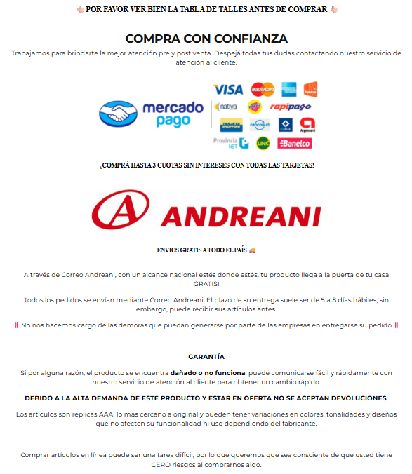 “La verdad que la calidad me sorprendió. Muy buena la tela y los detalles. Recomendados 100%.”